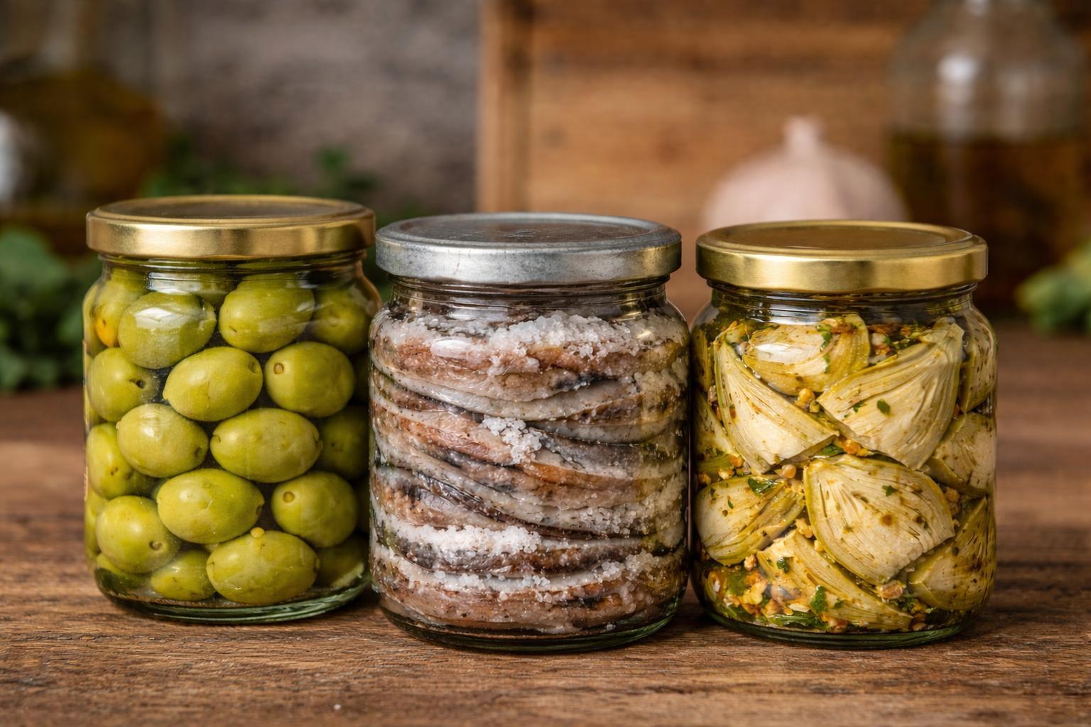 En este taller aprenderás a preparar tres deliciosas conservas: aceitunas partidas con hierbas y especias mediterráneas, anchoas en salazón siguiendo la técnica tradicional y alcachofas en conserva con aceite y aromas mediterráneos, que podrás disfrutar durante meses.